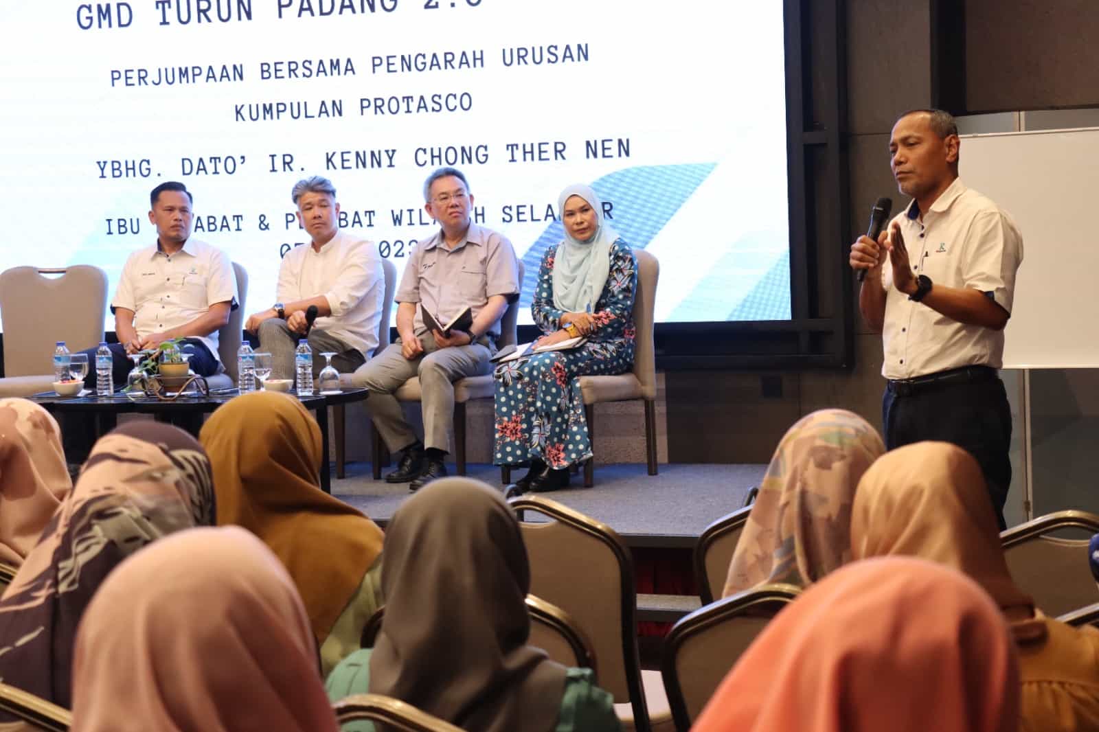 Inisiatif GMD Turun Padang 2.0 2023 fasa 2 yang melibatkan Maintenance Division telah pada 7 November 2023 bertempat di Putrajaya Hall, Park Inn, Unipark Suria, Kajang, Selangor. Program π¬πππππππ π¬πππππππππ πΊππππππ ini dihadiri oleh pasukan GMD dari Protasco Berhad iaitu; YBhg. Dato’ Ir. Kenny Chong Ther Nen (Group Managing Director), Mr. Freddie Cheong Kah Wang (Chief Financial Officer), Pn. Zarina bt. Daud (Head of Corporate & General Manager, Human Resources) bersama-sama champions/staf-staf dari Ibu Pejabat Kg. Pandan serta Pejabat Wilayah Selangor juga Pejabat Kawasan Bangi, Pejabat Kawasan Rawang dan Pejabat Kawasan Klang.
