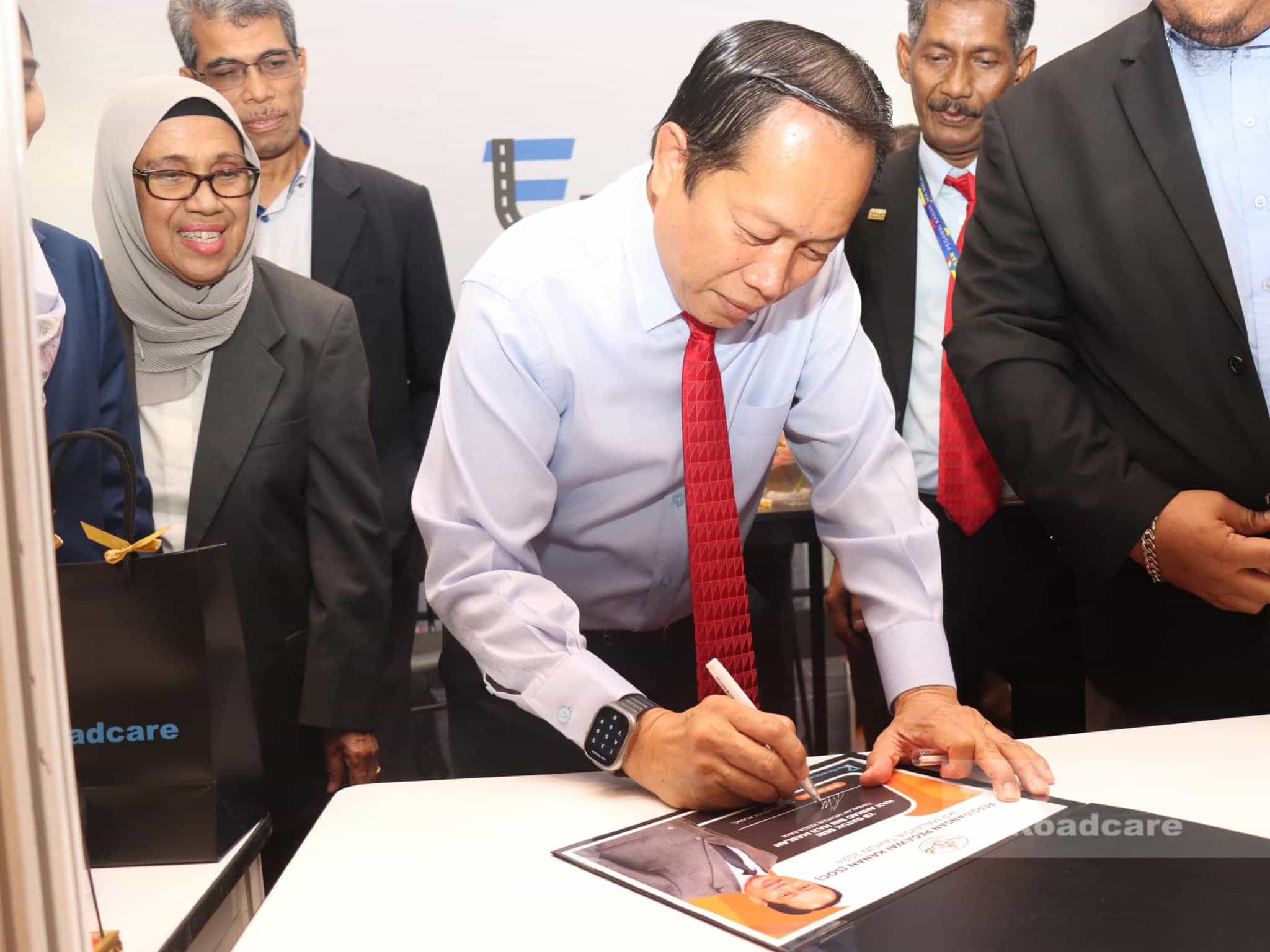 Sekalung penghargaan turut diucapkan kepada YB Datuk Seri Haji Ahmad Bin Haji Maslan, Timbalan Menteri Kerja Raya di atas kesudian singgah di reruai pameran Roadcare.