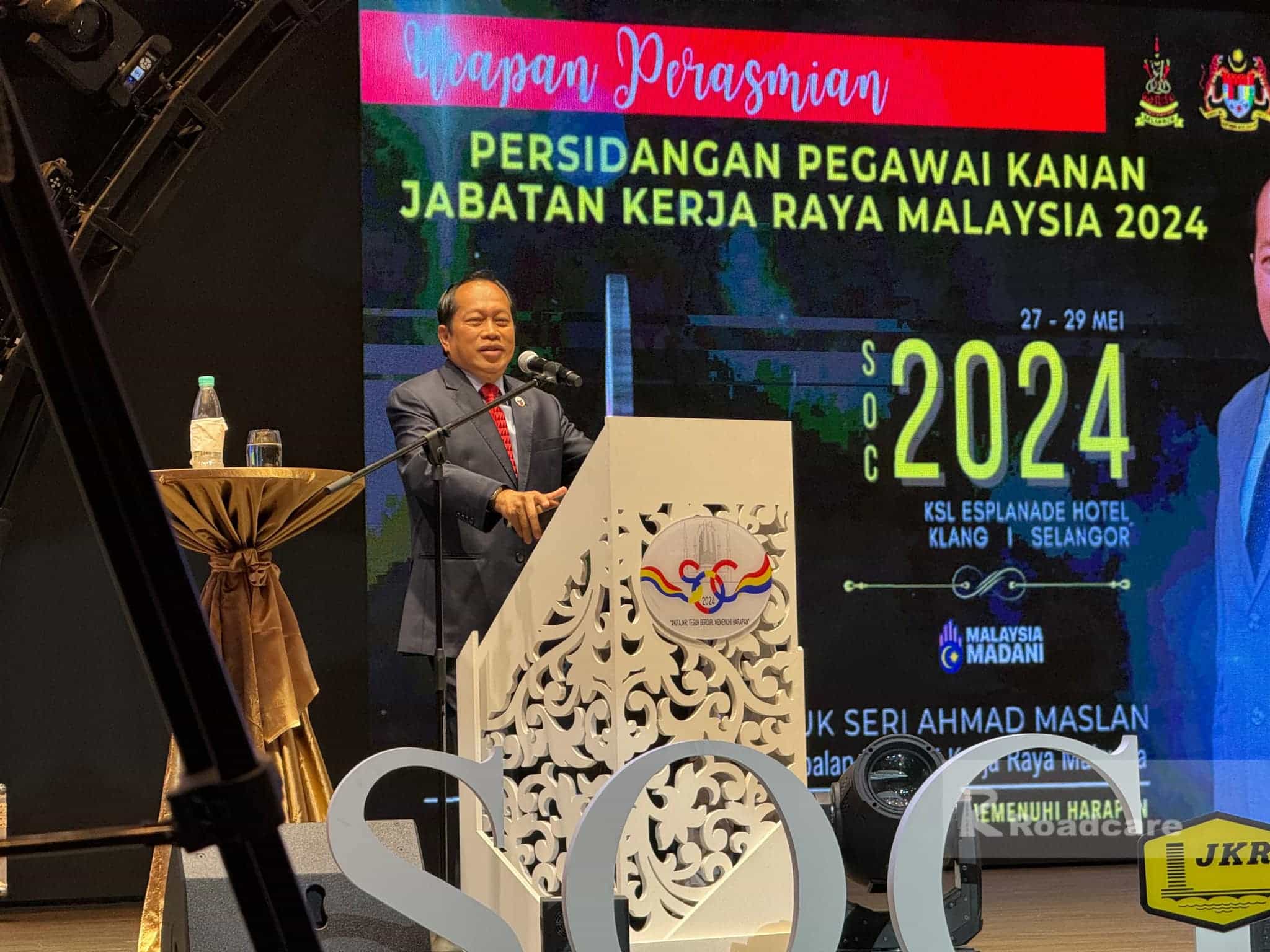 Persidangan Pegawai Kanan (SOC) JKR Malaysia dimulakan dengan Ucapan aluan YBrs. Ir. Mohd Zawawi Bin Zakaria, menjalankan tugas Pengarah JKR Negeri Selangor selaku tuan rumah SOC tahun 2024, disusuli dengan ucapan dari YBhg. Dato’ Ir. Haji Badioezaman Bin Ab Khalik, Timbalan Ketua Pengarah Kerja Raya (Sektor Bangunan) yang menjalankan tugas Ketua Pengarah Kerja Raya Malaysia, manakala ucapan perasmian disempurnakan oleh YB Datuk Seri Haji Ahmad Bin Haji Maslan, Timbalan Menteri Kerja Raya.